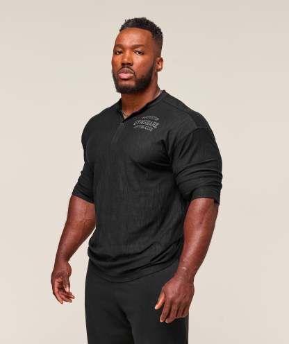 • Henley style that looks sick in and out of the gym